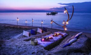 Nếu đủ khéo tay, hãy dậy sớm đi chợ, mua hải sản như mực, ngao, sò… để tối đến mang ra biển nướng. Không có điều kiện tự chuẩn bị, bạn có thể lựa chọn các gói dịch vụ BBQ sẵn có của một số công ty du lịch chuyên cung cấp dịch vụ này để có một bữa tối lãng mạn, rượu vang và hải sản.